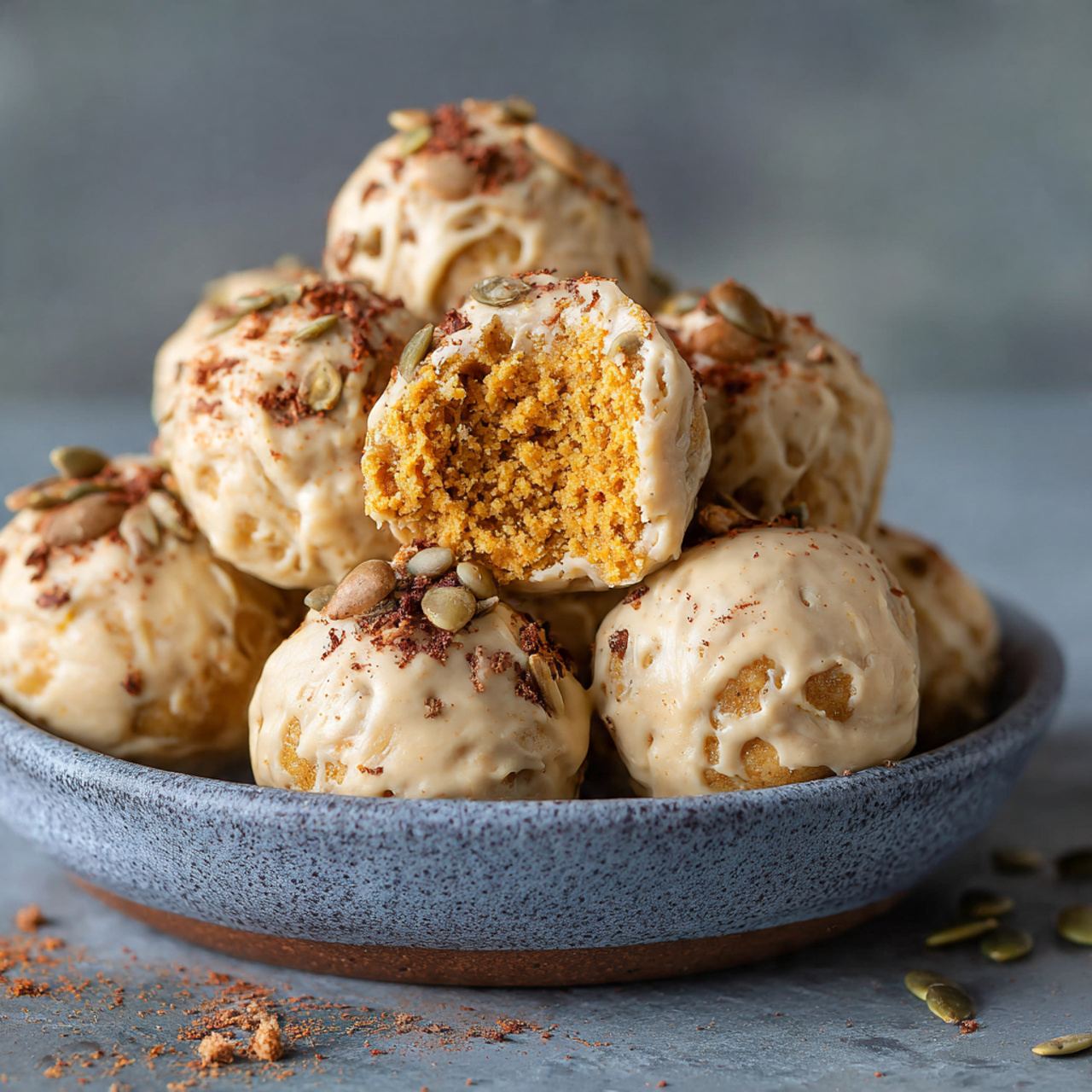- Freeze the pumpkin cheesecake balls for 1 hour.