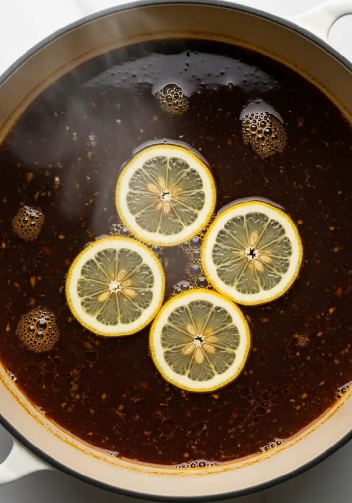 - 5 or 6 thin slices of lemon → These simmer on top and add a bright, citrusy aroma.