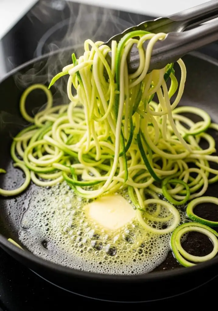 Critical Tip: Do Not Overcook! This is the number one rule of zucchini noodles. Overcooking them will release too much water and make your final dish soggy. - Remove the Zoodles. Use your tongs to transfer the cooked zucchini noodles to a plate, leaving the flavorful oil and butter behind in the pan.