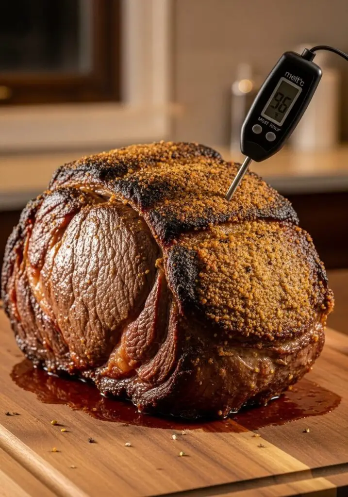 - Mustard Crust: Before applying the spice rub, smear the prime rib lightly with Dijon mustard for an extra tangy, flavorful crust.