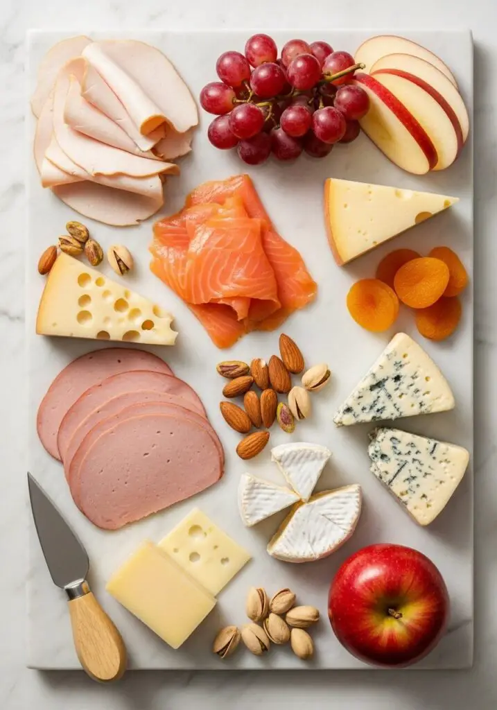 - Beautifully Inclusive for All Guests: By using delicious pork-free and pescatarian options like turkey and salmon, this board is a welcoming and delicious choice for guests with dietary restrictions.