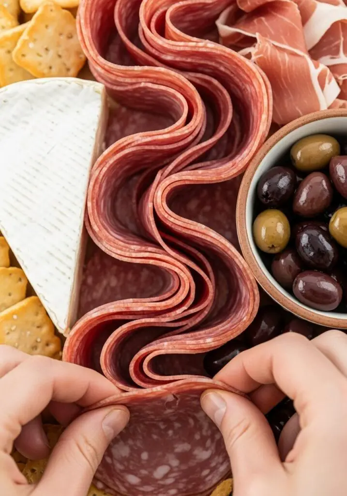 - Create Texture with Your Meats. Don’t just lay your deli meats flat. Folding larger slices into quarters to create “fans,” rolling thinner slices into “rosettes,” or creating fluffy “ribbons” adds height and a ton of visual interest.