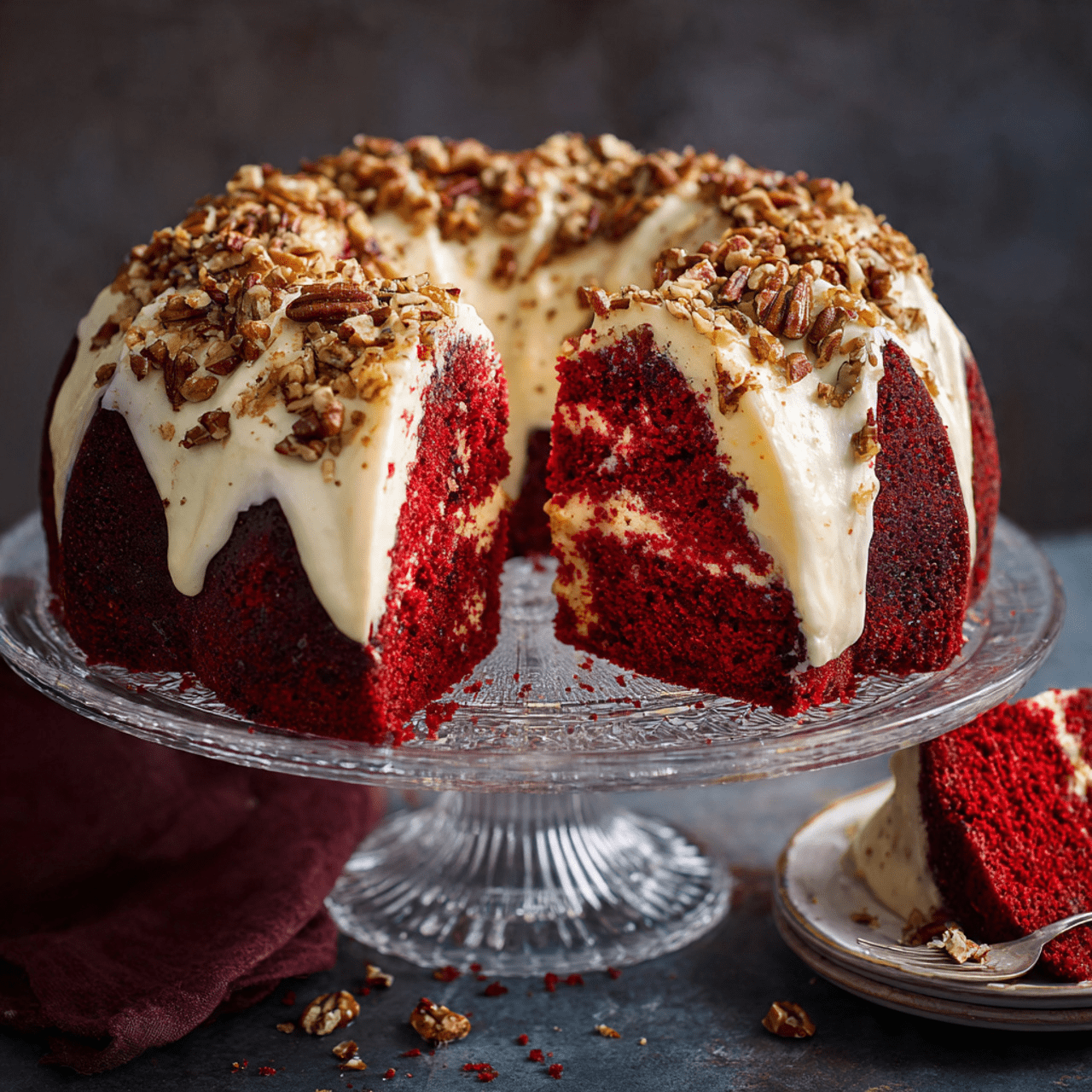 - Frost and Garnish: Once the cake is completely cool, spread the luscious cream cheese icing over the top, letting it drip beautifully down the sides. Sprinkle the top with toasted pecans. Refrigerate the cake to allow the icing to set.