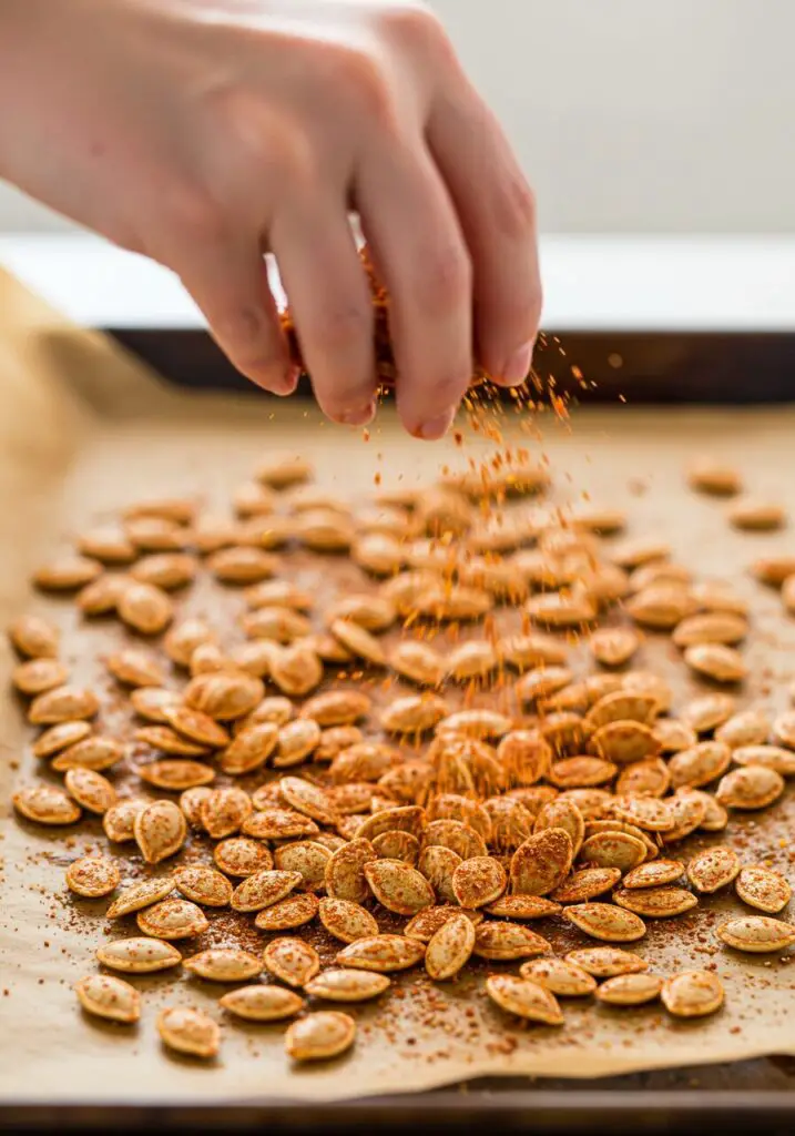 - Season and Roast: Mound the completely dried seeds onto your prepared baking sheet. Drizzle with the olive oil and sprinkle with your chosen spice blend. Use your hands to toss everything together until the seeds are evenly coated.