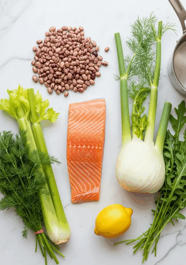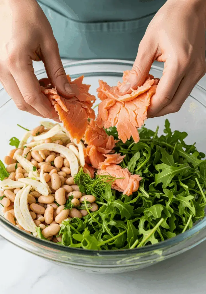 Imagine a salad that is the epitome of simple elegance—a beautiful, vibrant bowl filled with large, tender flakes of perfectly poached salmon, creamy cranberry beans, crisp fennel and celery, and peppery arugula, all tossed in a bright, zesty lemon-dill vinaigrette. That, my friends, is the sophisticated, wholesome magic of this Easy One-Bowl Salmon and Bean…