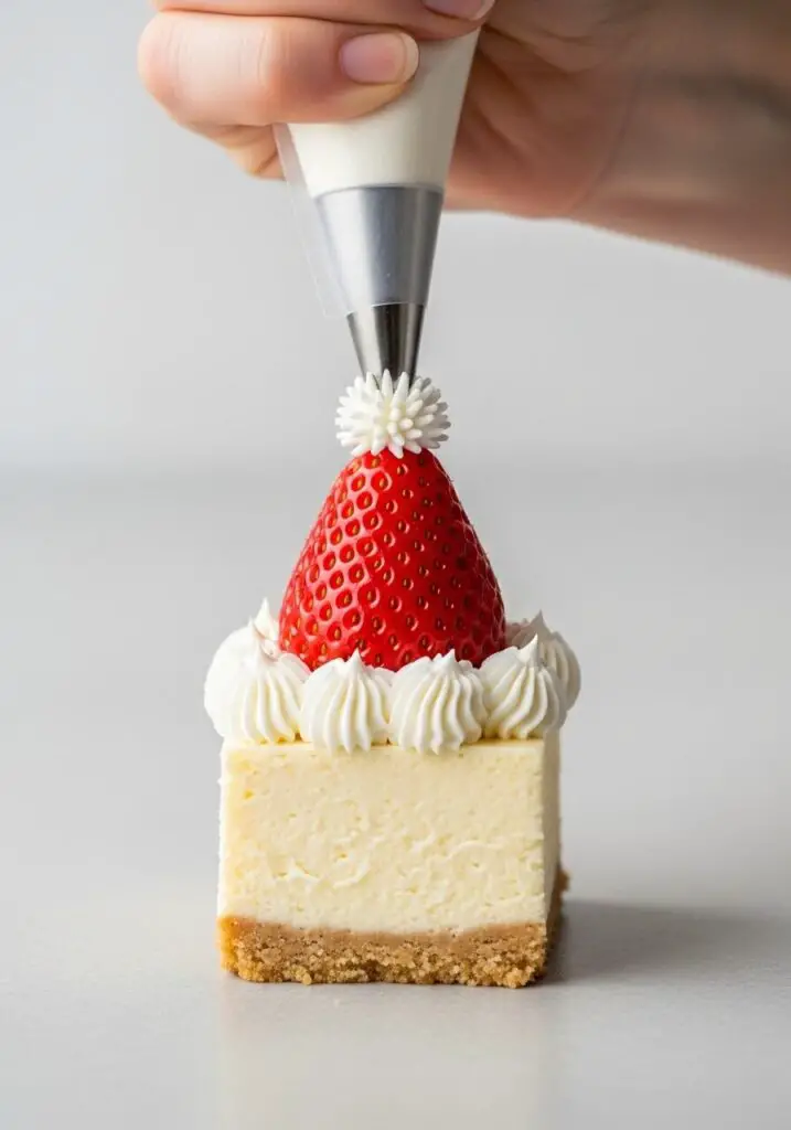 I promise you, there is no greater delight than watching faces light up when you bring out a platter of these adorable Santa hats. The combination of textures is simply divine, with the crunchy base perfectly balancing the smooth cheesecake, and the fresh strawberry cutting through the richness with a burst of bright, juicy flavor. They are the whole holiday package in one perfect square.