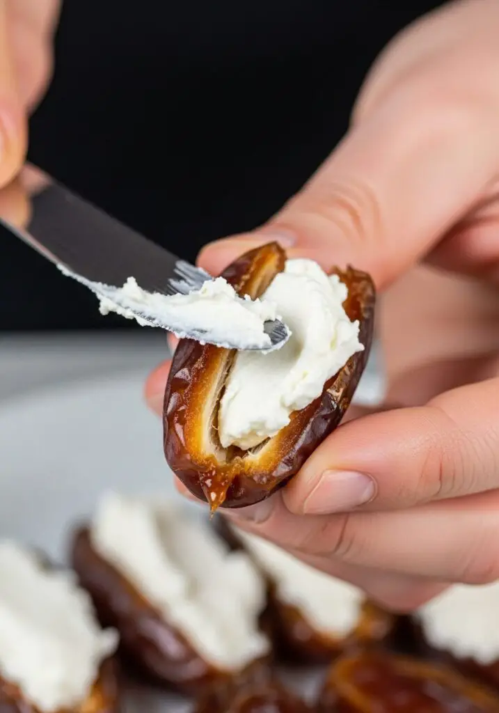 - Slightly Soften the Goat Cheese: Let your log of goat cheese sit at room temperature for about 15-20 minutes before you start. This will make it much easier to spread smoothly into the dates.