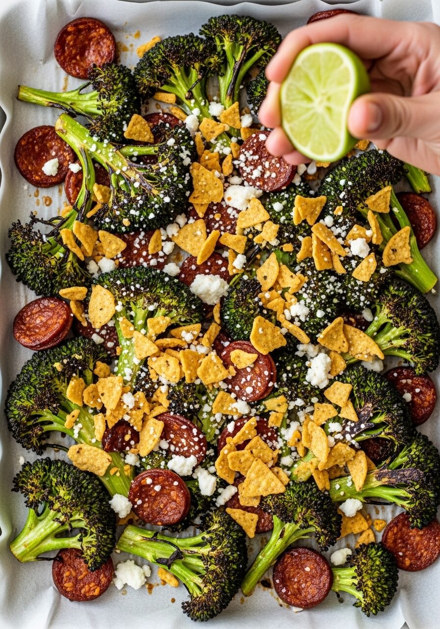 Imagine a dinner that completely redefines the humble sheet pan meal. Picture this: crispy, caramelized broccoli florets and savory, spicy chorizo, all roasted to perfection in their own delicious rendered fat. Now, crown that with a genius, crunchy, and zesty “gremolata” made from crushed tortilla chips, fresh cilantro, and lime. That, my friends, is this…