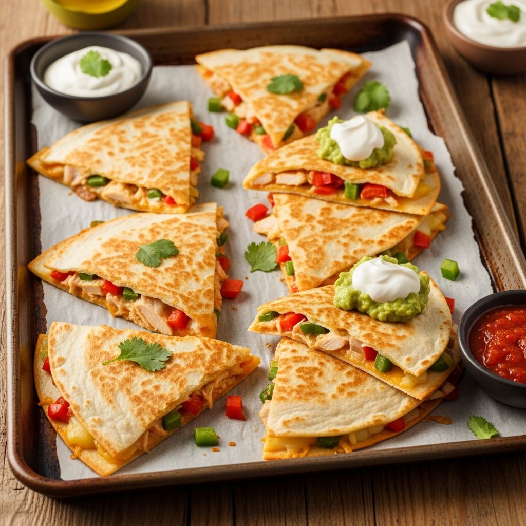 Easy Sheet Pan Chicken Quesadillas