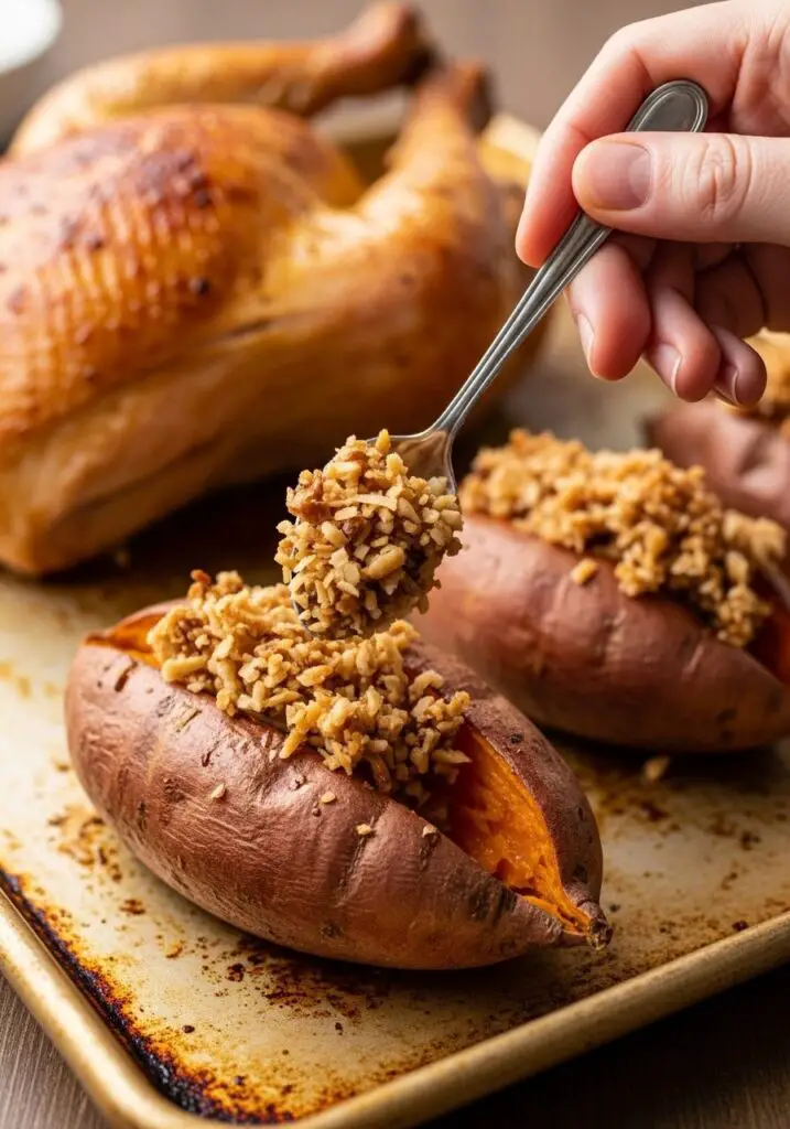- Nut-Free Options: Simply omit the pecans on the sweet potatoes, and use extra cranberries instead of pumpkin seeds in the pilaf.