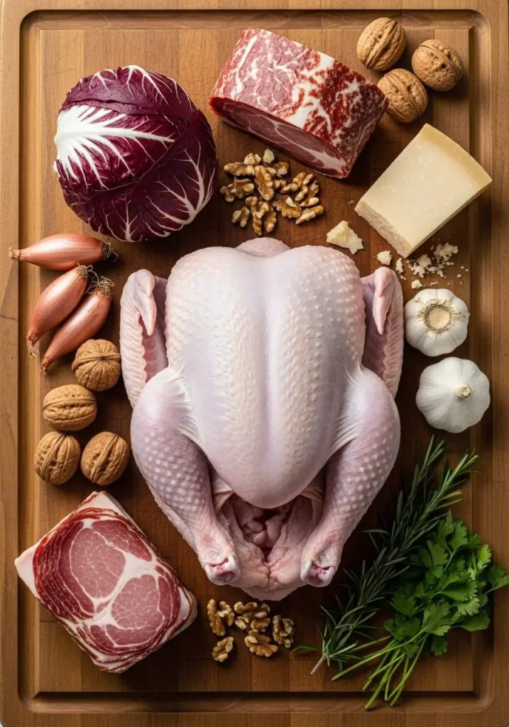 Let’s be honest, the traditional Thanksgiving turkey can be a source of major holiday stress. We all chase the dream of a perfectly cooked bird, but often end up with dry breast meat and undercooked thighs. What if I told you there’s a better way? A method that guarantees every single slice is succulent, juicy, and packed with incredible flavor. Welcome to the showstopper that will change your holiday table forever: the Turkey Ballotine. This is not just a turkey; it’s a culinary masterpiece. We take a whole turkey, carefully debone it, and then stuff it, jelly-roll style, with a savory, sophisticated filling of salty speck, nutty toasted walnuts, sharp Parmesan, and slightly bitter radicchio. It’s then rolled, tied, and roasted to golden-brown perfection. The result? A stunning, cylindrical roast that slices like a dream, revealing a beautiful spiral of filling in every piece. Every single bite contains the perfect ratio of juicy meat to savory stuffing. It’s a true project, a fun culinary adventure that culminates in the most impressive and delicious turkey you’ve ever served.