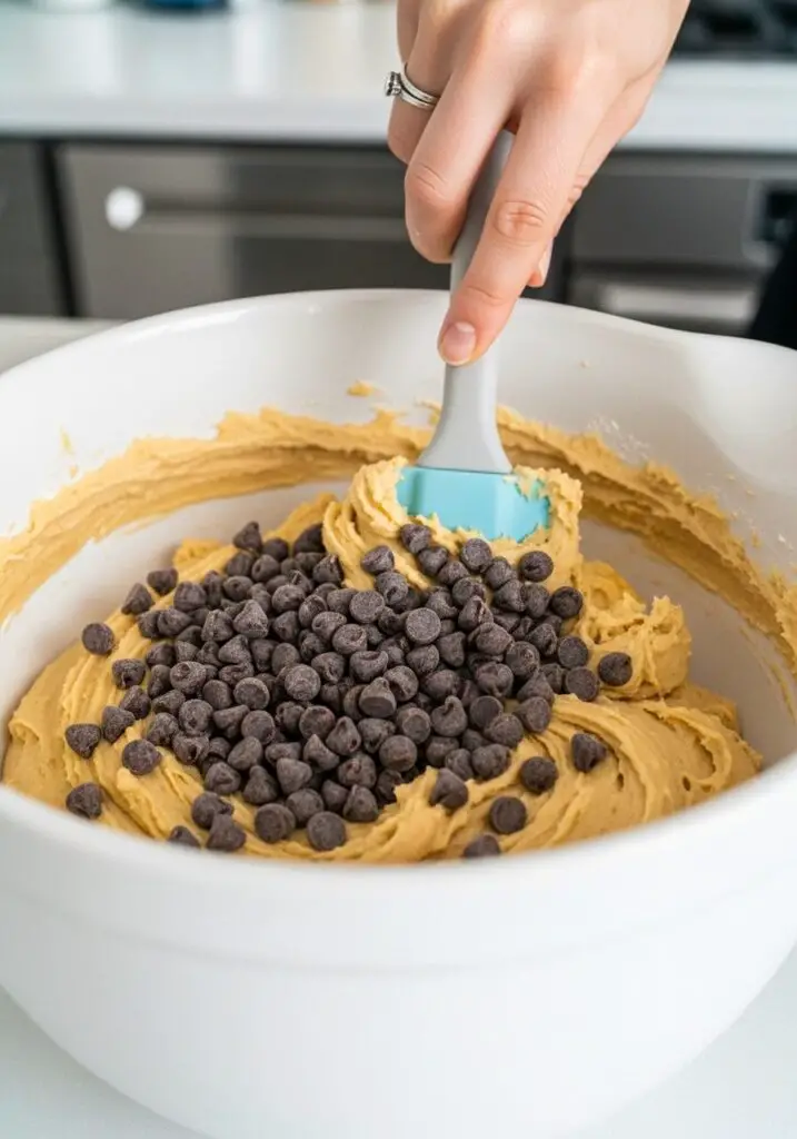 - Fold in Chocolate Chips: Gently fold in 1 ½ cups of chocolate chips until evenly distributed throughout the dough.
