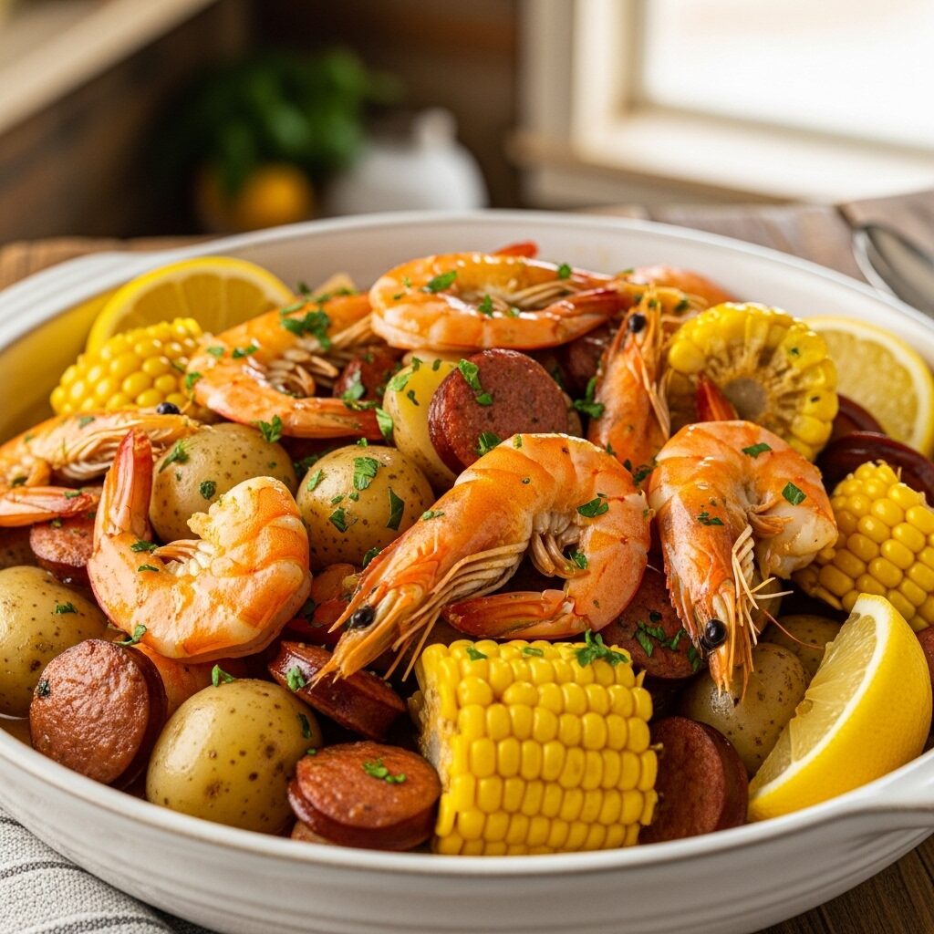 - Perfectly Tender & Juicy Seafood & Veggies: The slow cooking method ensures the potatoes are tender, the corn is sweet, the sausage is savory, and the shrimp cook to plump perfection (added at the end!).