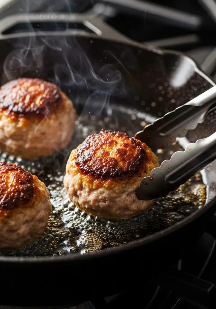 - Sear the Meatballs: Heat a large skillet over medium-high heat. Add a tablespoon of olive oil and let it get hot. Working in batches, carefully place the meatballs in the skillet, leaving some space between them. Sear them for about 1 minute per side, just until they get a beautiful brown crust. This step is a flavor game-changer—don’t skip it!