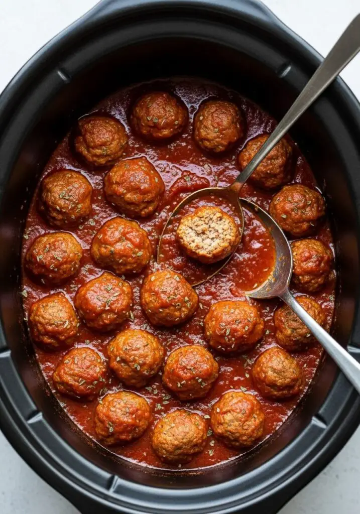 - A Rich, Homemade Sauce Included: No jarred sauce here! We’re making a simple but deeply flavorful marinara-style sauce right in the slow cooker with the meatballs. It’s incredibly delicious.