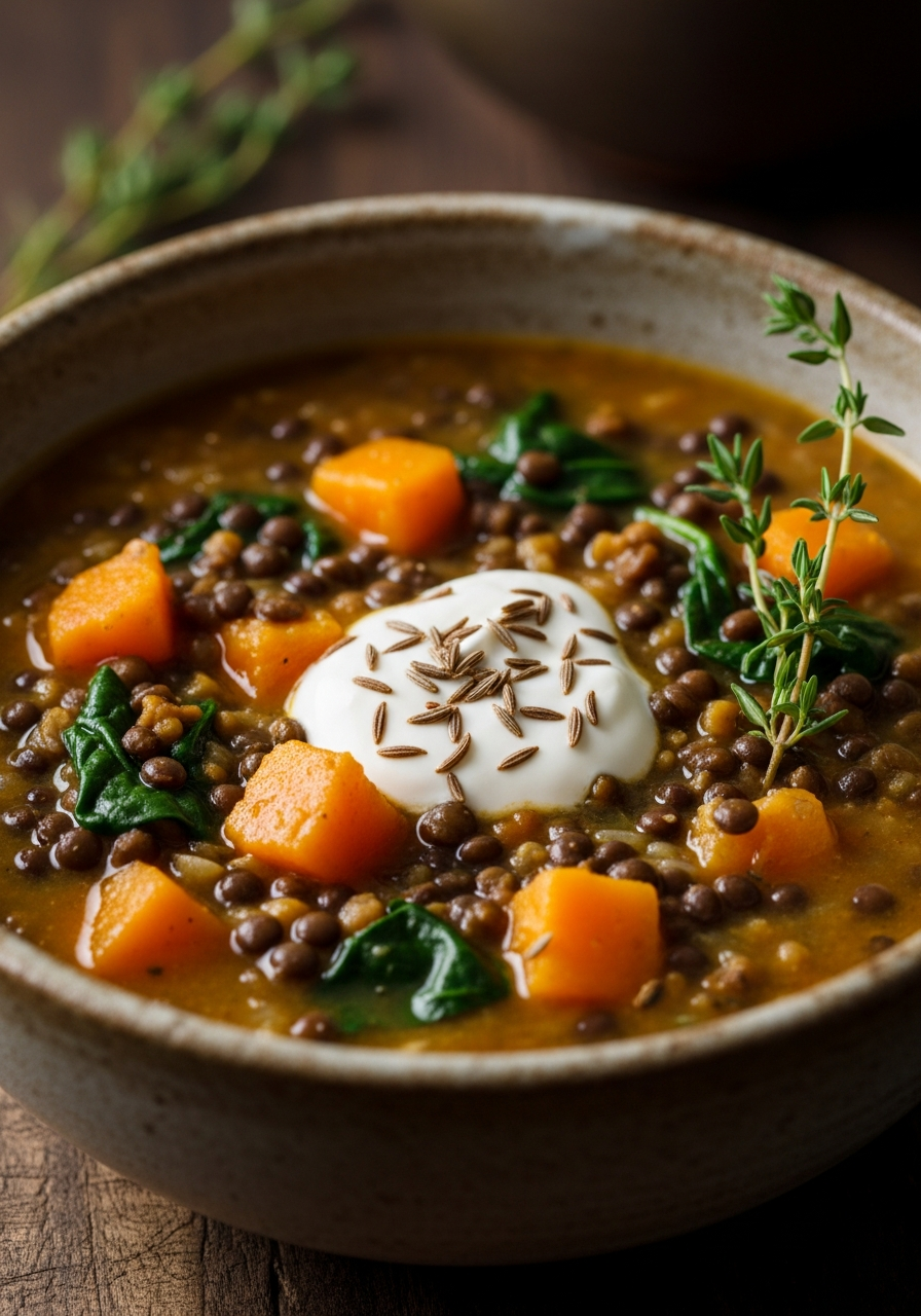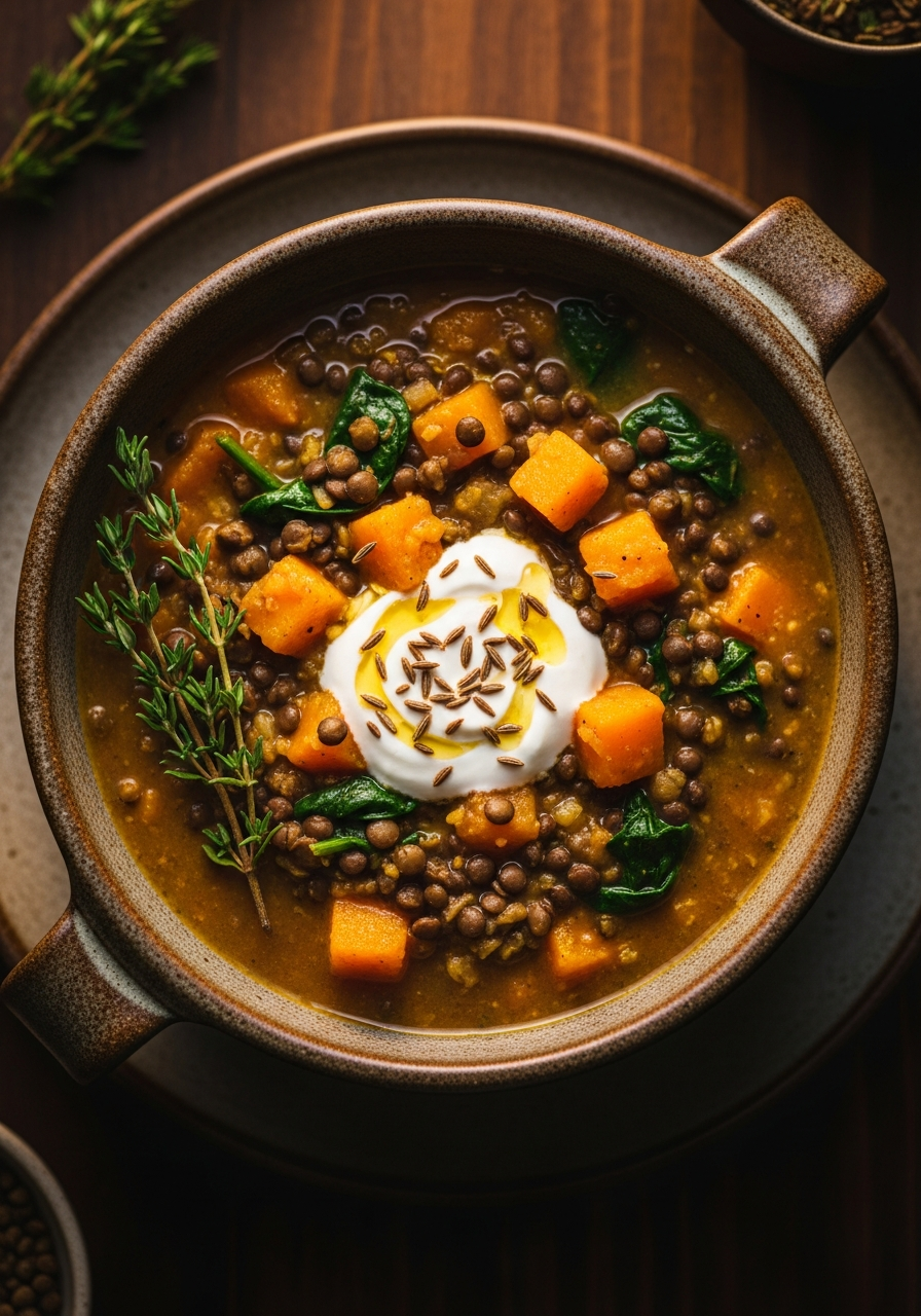 Imagine a soup so hearty, so deeply flavorful and nourishing, that it feels like a warm, comforting hug in a bowl. That, my friends, is the wholesome, rustic magic of this Spiced Squash, Spinach, and Lentil Soup. It’s a beautiful mosaic of textures and earthy flavors—sweet, caramelized butternut squash, hearty Puy lentils, tender spinach, and the wonderful, smoky warmth of toasted cumin. This is, without a doubt, the most satisfying and soulful soup you will make this season.