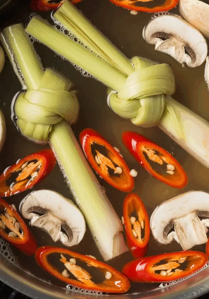- Taste the soup and adjust seasoning with more chiles (for spice), lime juice (for sour), or soy/fish sauce (for salt) as desired.