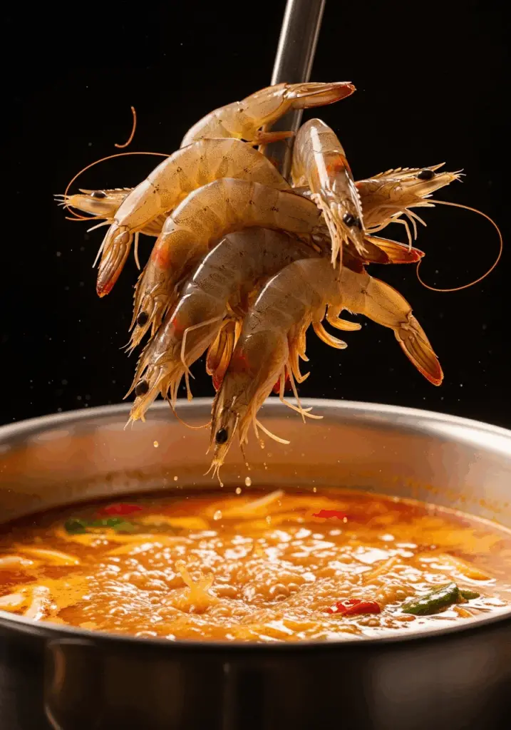 - Cook the Shrimp: Add the prepared shrimp to the simmering broth. Cook for just about 3 minutes, until the shrimp are pink, opaque, and perfectly cooked. Be careful not to overcook them!