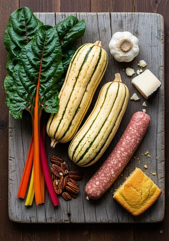 - Stuff the Squash: Carefully spoon the hot sausage and chard mixture evenly into your four roasted squash halves.