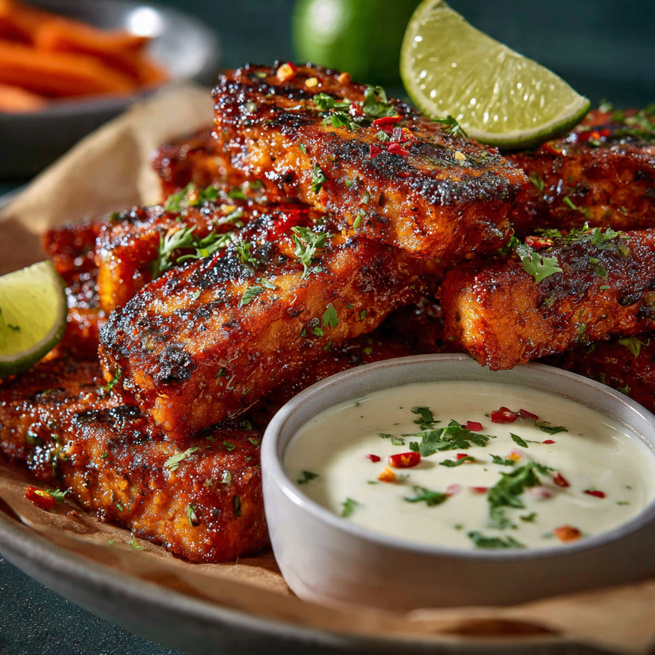 I promise you, there is no greater triumph than serving a vegan appetizer that has even the most devout carnivores coming back for more. The combination of the hearty, grilled tempeh and the spicy, rich buffalo sauce is a true flavor explosion. Served with crisp celery sticks and a homemade vegan dill ranch, it’s a complete, restaurant-worthy experience that feels both indulgent and wholesome.