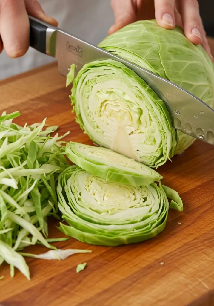 - Shred the Cabbage: Quarter your cabbage through the core, then cut out the tough core pieces. Cut each quarter in half crosswise, and then use a sharp knife to finely shred it. You want long, thin ribbons. Place all that glorious shredded cabbage in a very large bowl.