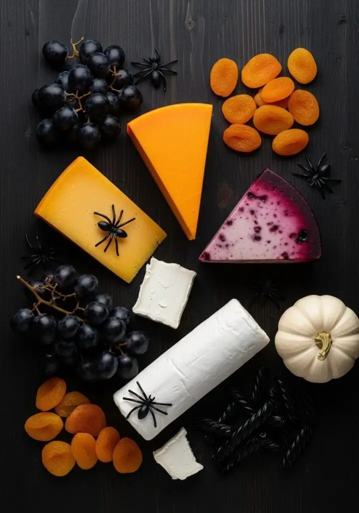 - Purple/Dark Cheeses: A wine-soaked cheddar or Merlot Bellavitano for a ghoulish purple hue.