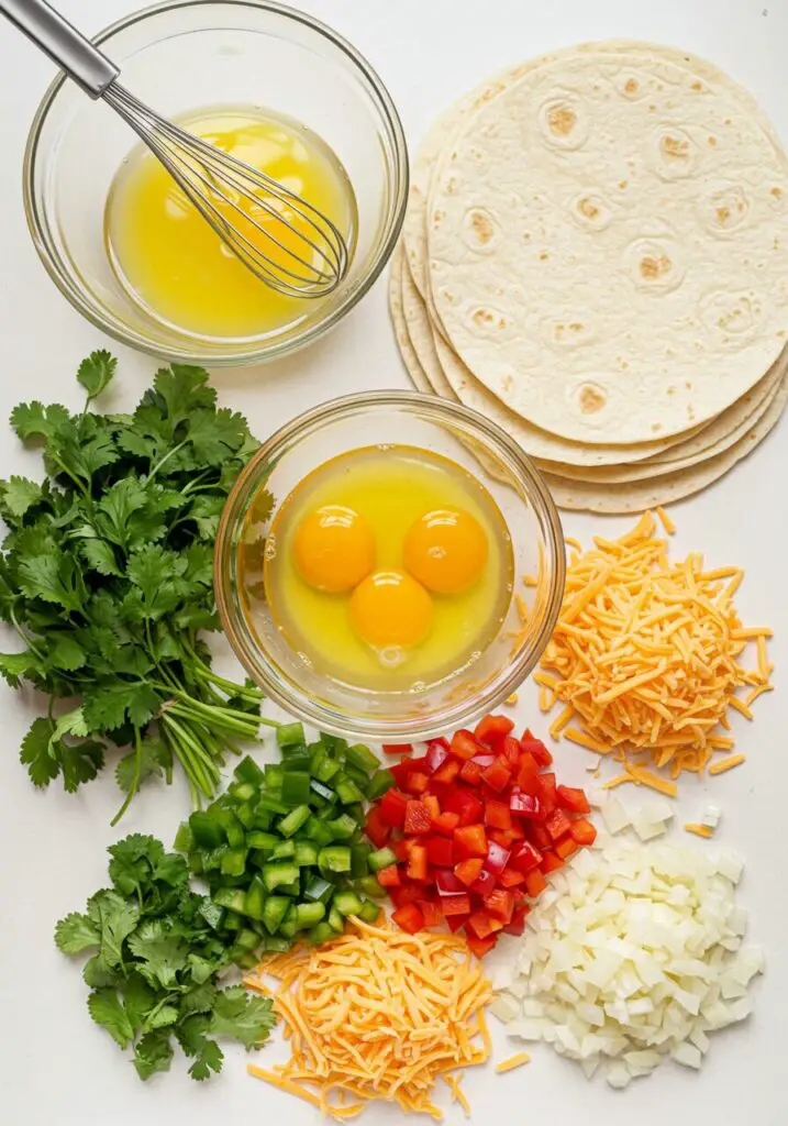- Layer the Fillings: Place a scoop of the cooled scrambled eggs in the center of a warm tortilla. Top with a portion of the cooled vegetables, a sprinkle of shredded cheese, and some fresh cilantro.