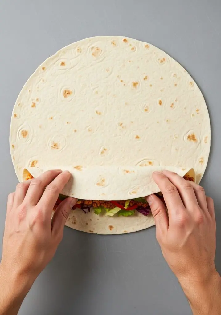 - The Perfect Fold: First, fold the left and right sides of the tortilla in towards the center, over the filling. Next, take the bottom edge of the tortilla (the side closest to you) and wrap it up and over the filling, tucking it in snugly. Continue to roll upwards, keeping the roll tight, to form a perfect burrito.