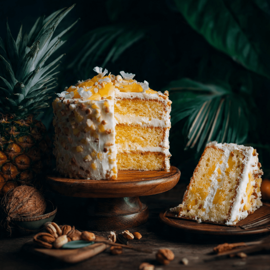 Tropical Pineapple Layer Cake with Macadamia Nut Filling