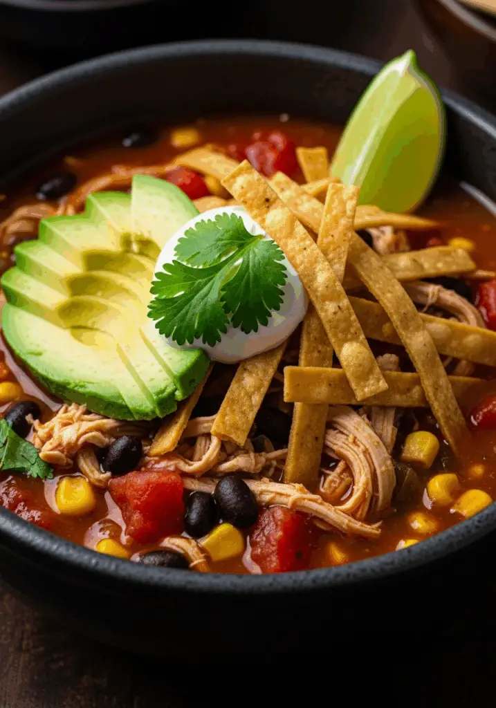 I promise you, from the moment you take your first spoonful, you’ll be hooked. The broth is savory and perfectly spiced, the chicken is melt-in-your-mouth tender, and the real fun begins with the toppings! A crunchy mountain of tortilla strips, creamy avocado, a dollop of sour cream, and a fresh squeeze of lime transform this from a simple soup into an interactive feast.