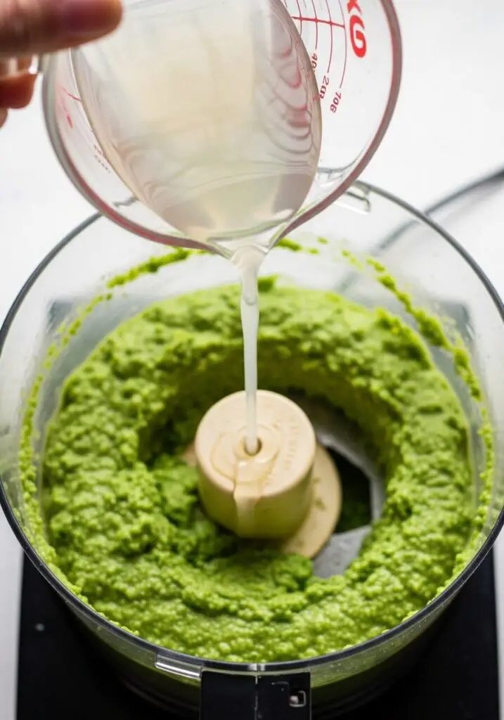- The Secret Ingredient! Just before your pasta is done cooking, carefully scoop out about 1/4 cup of the starchy, boiling pasta water. Add this directly to the food processor and pulse again until the pesto is super-smooth and creamy.