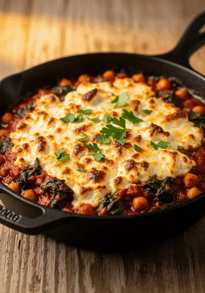 Mediterranean Chickpea Casserole with Spinach and Feta