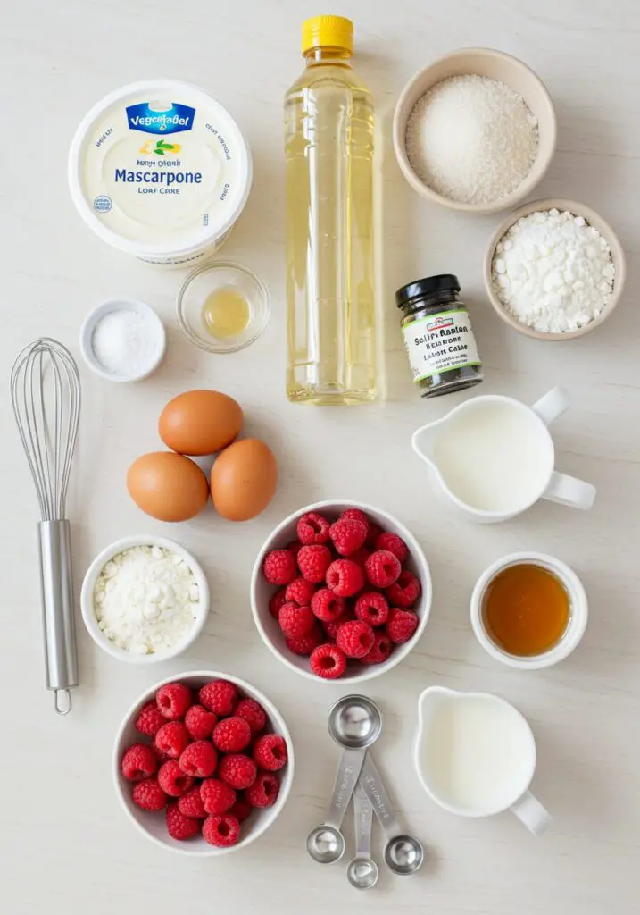 Creating this incredible Vanilla & Raspberry Mascarpone Loaf Cake uses simple, fresh ingredients that deliver big flavor. Here’s what you’ll want to grab to get started!