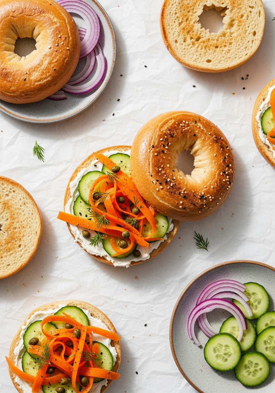 - Serve: Assemble your perfect bagel! Toast a bagel, spread it with vegan cream cheese, and pile the carrot lox on top. Garnish with cucumber slices, capers, and a generous sprinkle of fresh dill. Enjoy immediately!