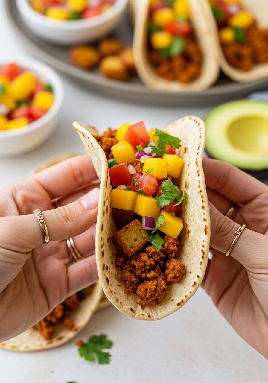 This Vegan Chorizo Breakfast Tacos recipe is a true celebration of bold flavors, hearty textures, and incredible ease. It’s an easy vegan chorizo and potato tacos with mango salsa that proves a best 30 minute plant based breakfast taco recipe can be both exciting and deeply satisfying. Learning how to make crispy vegan chorizo crumbles for tacos will open up a new world of delicious plant-based meals!