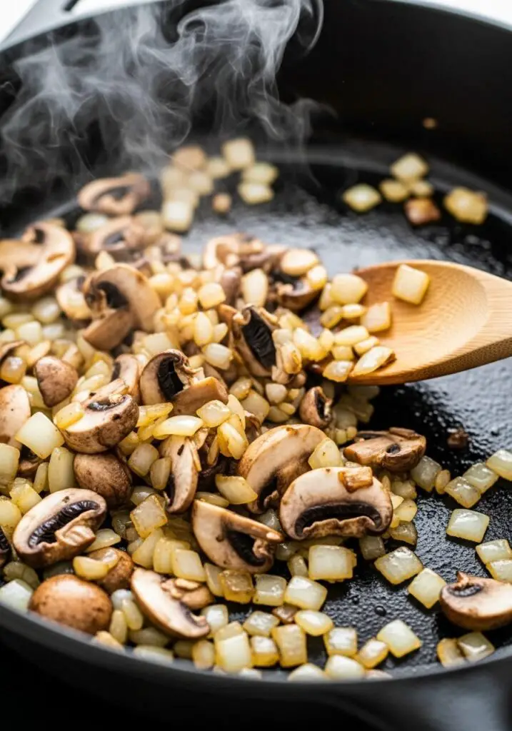 - Cook the Mushrooms: Add the sliced mushrooms to the pan and sauté for about 5 minutes, until they have released their liquid and started to brown.