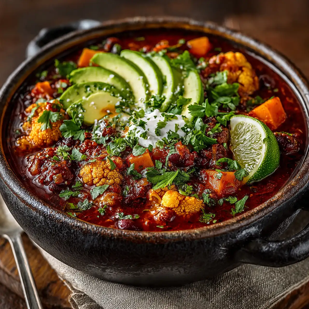 Hearty Vegetarian Cauliflower Chili with Three Beans (Protein-Packed)