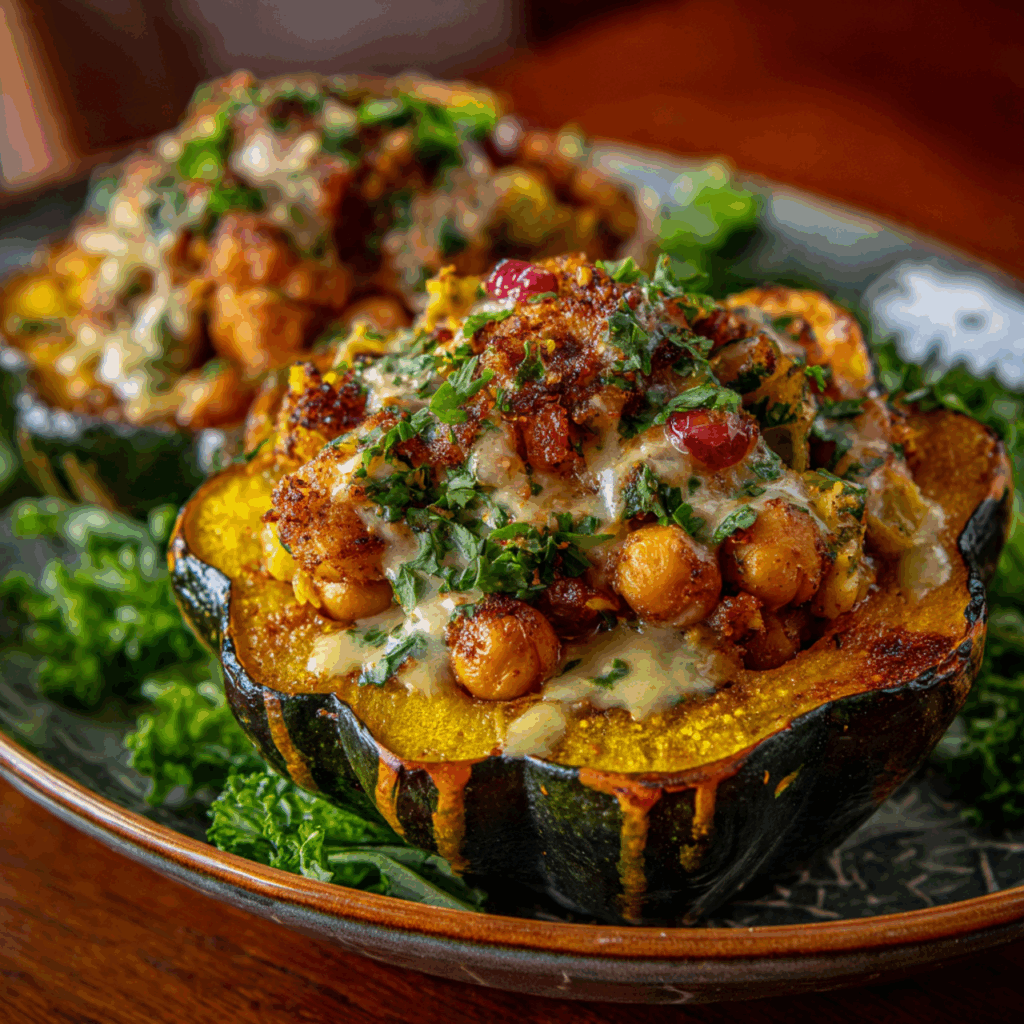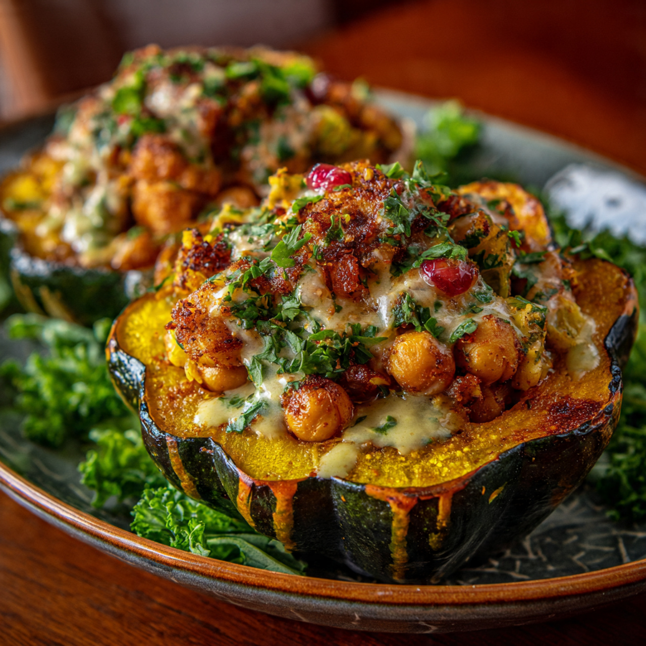 Imagine a beautiful, perfectly roasted acorn squash, its flesh tender and sweet, transformed into a stunning edible bowl. Now, picture it generously filled with a rich, creamy, and aromatic curry of hearty chickpeas, mushrooms, and onions, all simmered in a fragrant coconut milk broth. That, my friends, is the cozy, vibrant magic of this Curried Chickpea Stuffed Acorn Squash. This isn’t just a side dish; it’s a show-stopping, wholesome main course that is, without a doubt, the taste of autumn on a plate.