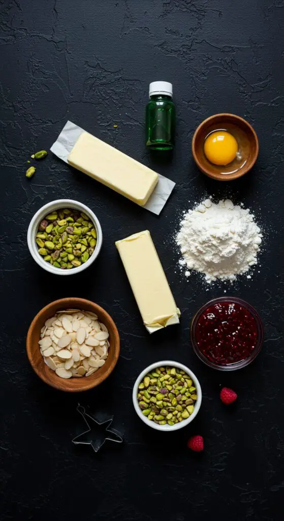 - Make the Cookie Dough: In a large bowl using a stand mixer or handheld mixer, beat the confectioners’ sugar and softened butter on medium speed for about 2 minutes, until pale and fluffy. Beat in the egg for 1 more minute, then add the almond extract, vanilla, and green food coloring and beat until combined. In a separate bowl, whisk the flour and salt. Add the dry ingredients to the butter mixture and beat on low speed until just combined. Fold in the finely chopped pistachios. Cover the bowl and refrigerate the dough for at least 30 minutes.